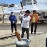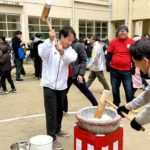 どんと焼きの途中、鳥飼校区と田島校区の新春のつどいに参加して、新年のご挨拶を行いました。