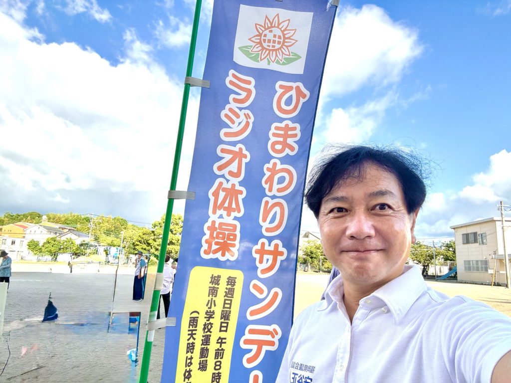 日曜日の朝は城南校区の「ひまわりサンデーラジオ体操」を訪問しました。