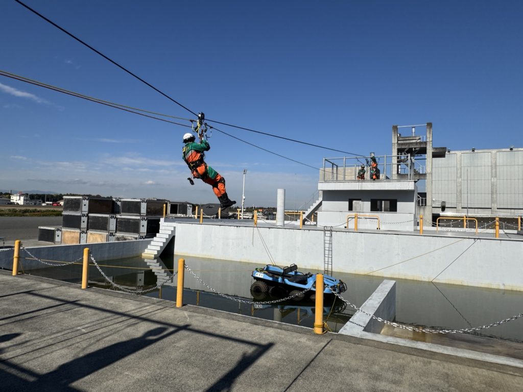 浸水域対応訓練ゾーンやビル倒壊対応訓練ゾーン等で実演して頂きました。