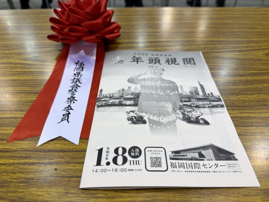 令和8年福岡県警察年頭視閲が行われ、県警本部や各警察署の警察官らが行進し、パトカーや白バイなどの車両20台が披露され、参加した警察官360人が治安向上への決意を新たにした。