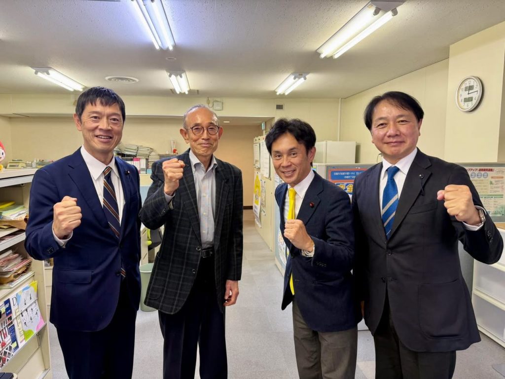 九州電力でお勤めされた人生の先輩方(九電ユニオン友の会本店支部)の役員の皆さんとの意見交換会に稲富修二さん(福岡2区)と許斐亮太郎さん(福岡4区)と参加しました。