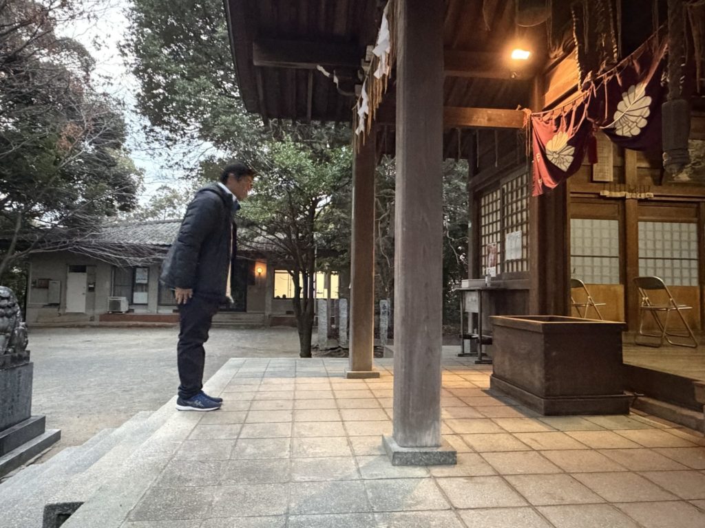 初日の早朝は野間住吉神社での神事やポスター貼りの皆様へのお礼と決意表明を行いました。