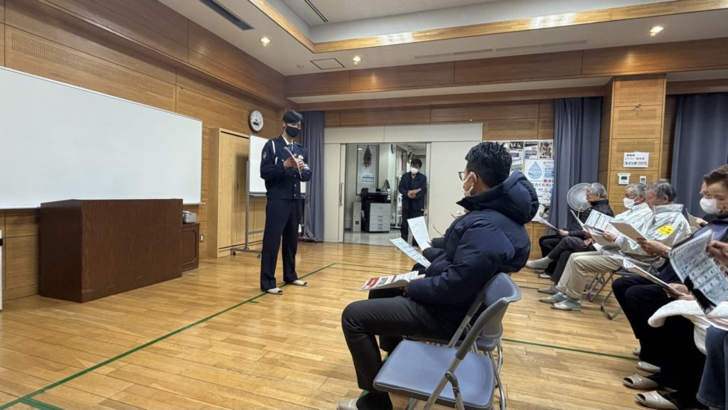 SNS詐欺への注意喚起や4月から自転車の違反への青切符の適用、パトロールの意義などについて講演して頂きました。質疑も行われ、地域の皆さんの防犯への意識の高さに敬服いたしました。
