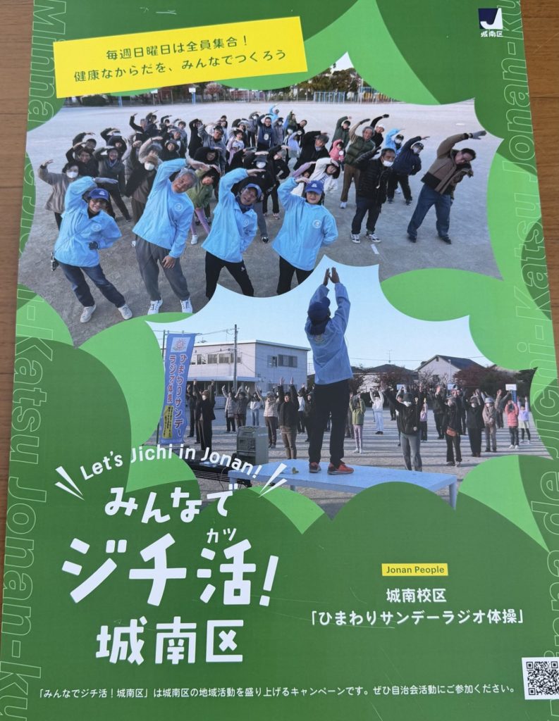 この日はひまわりサンデーラジオ体操のポスターのお披露目もあり、城南校区の掲示板などに貼られるとのことです。